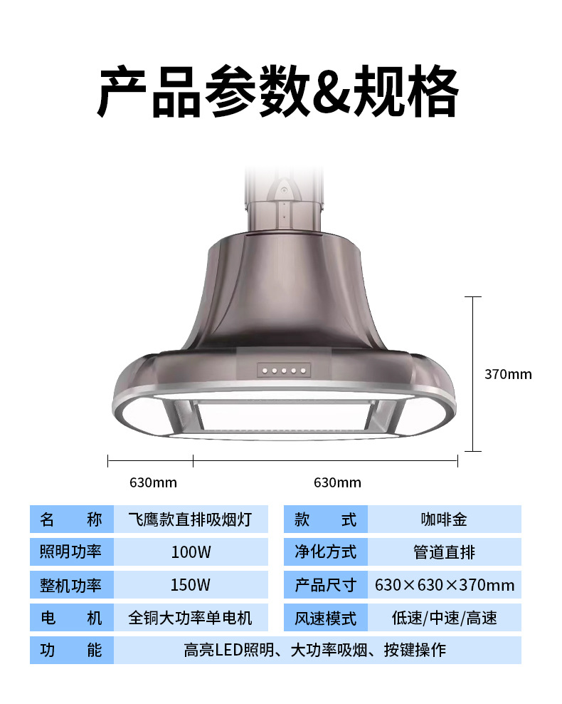 【功能】高亮LED照明、大功率吸煙、按鍵操作